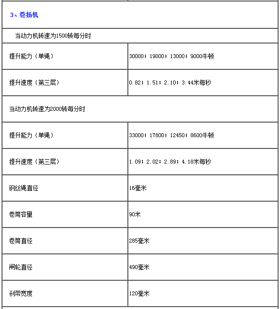 XY-4型钻机技术规格